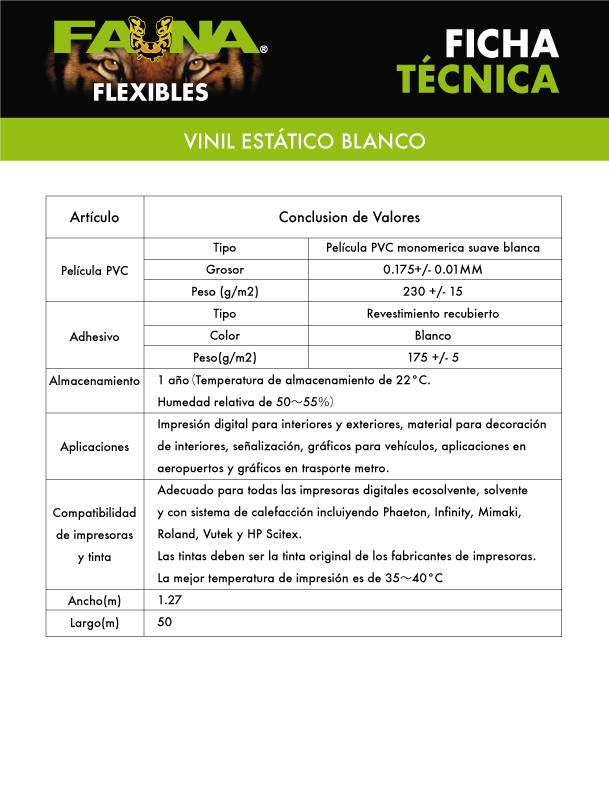 Film: 0.175+/- 0.01 mm.120 monomérico Blanco, satinada película de PVC.