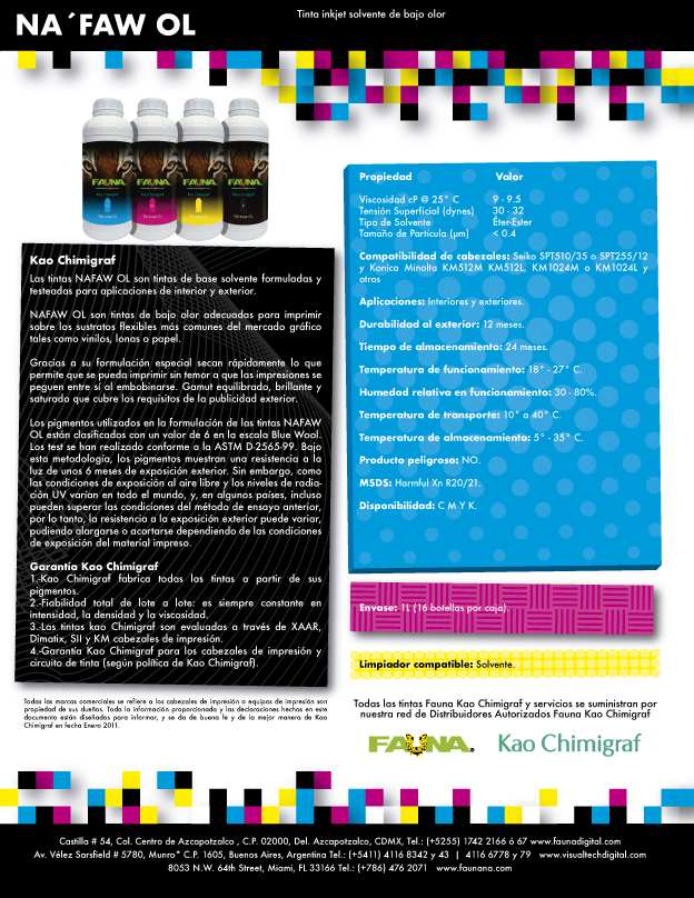Las tintas NAFAW OL son tintas de base solvente formuladas y testeadas para aplicaciones de interior y exterior.